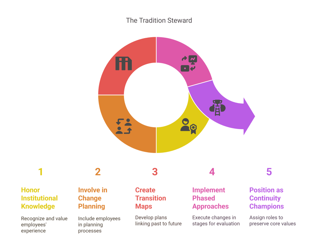 These team members can become valuable implementation specialists, process guardians, and champions of sustainable change initiatives. Their appreciation for established systems provides an important foundation for innovation.
