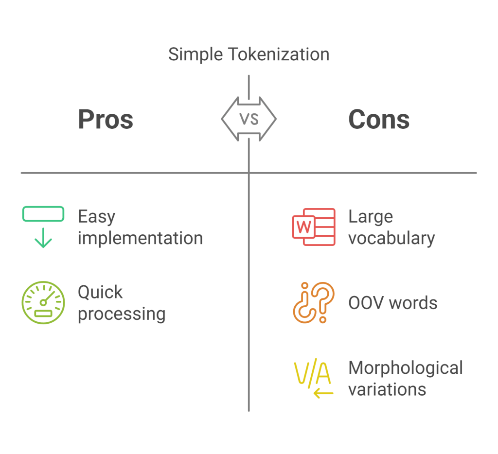 Early methods often tokenized text by splitting it into words based on spaces and punctuation. However, this approach has several drawbacks: