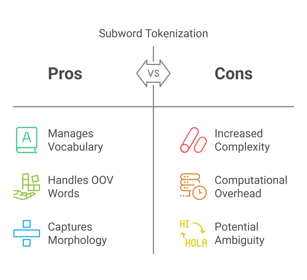 - Handles OOV Words: New or rare words can be constructed from known subword units, drastically reducing the occurrence of