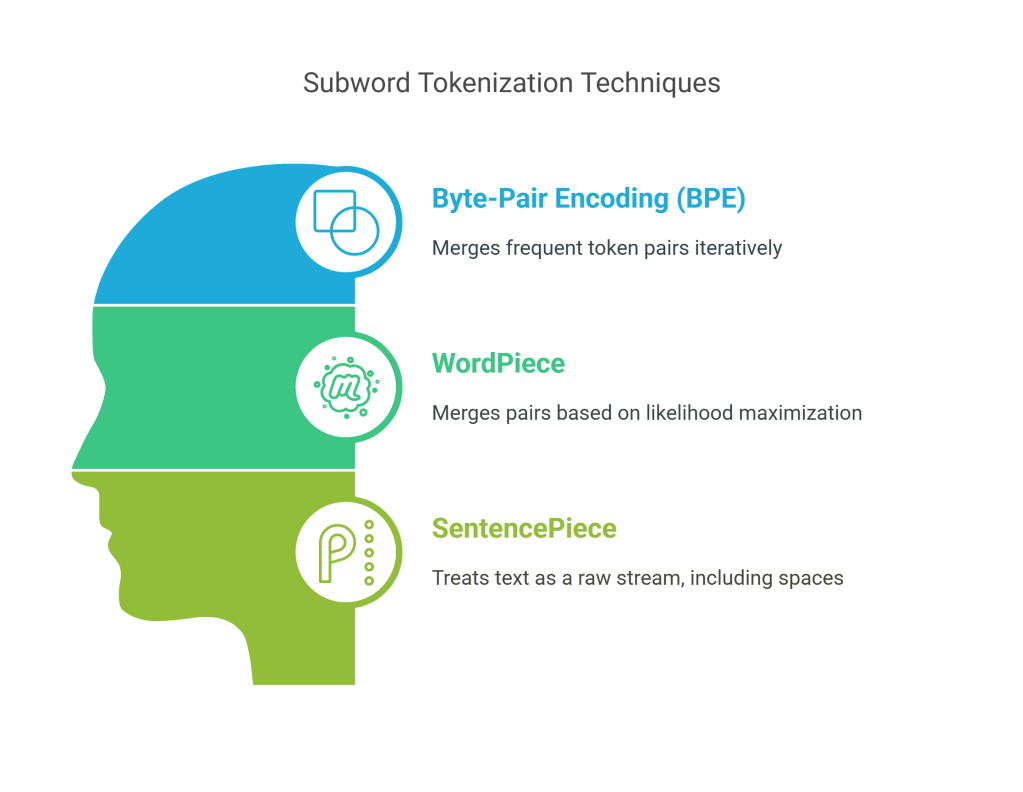 - Similar to BPE but uses a likelihood-based criterion for merging pairs instead of raw frequency. It merges pairs that maximize the likelihood of the training data given the current vocabulary.