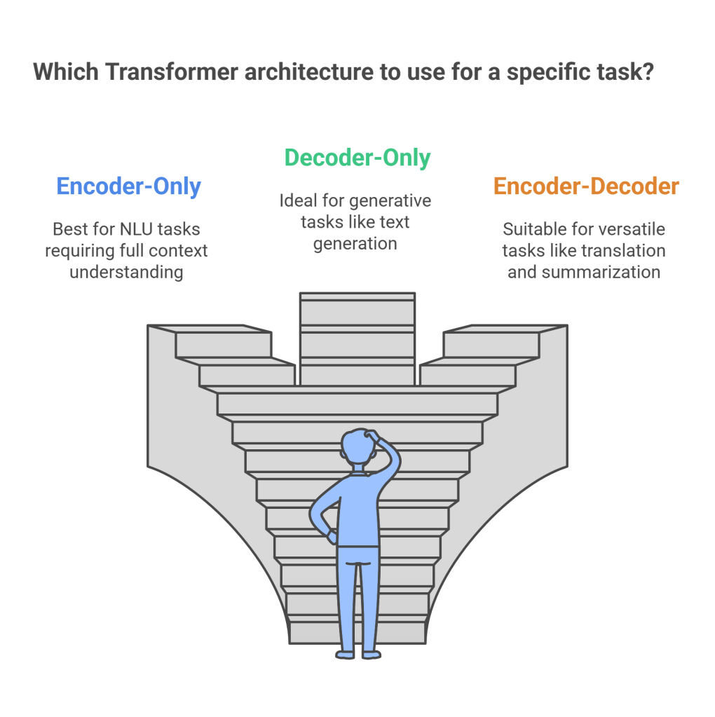 We explored the prevalence of the decoder-only architecture for generative tasks, driven by the causal language modeling pre-training objective. The remarkable performance of these models is strongly tied to scaling laws, demonstrating predictable improvements with increased model size, data, and compute. Advanced techniques like FlashAttention, KV caching, RoPE, GQA/MQA, and MoEs are vital for pushing efficiency and capability boundaries. Training these models requires massive infrastructure and sophisticated distributed training strategies, while inference relies on careful decoding methods like nucleus sampling. Finally, fine-tuning techniques, especially PEFT methods and alignment processes like instruction tuning and RLHF, adapt these powerful models for specific applications and user needs.