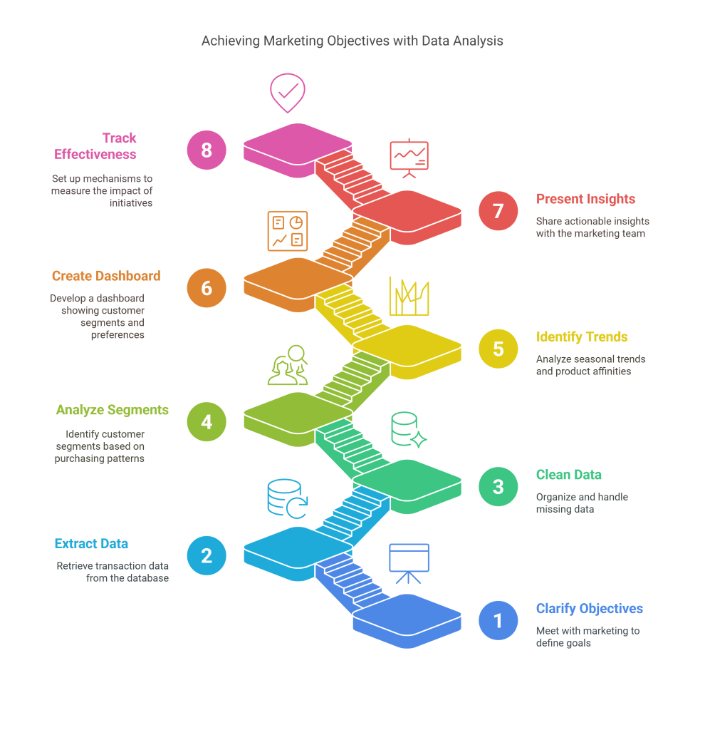 - Presents actionable insights to the marketing team with recommendations for targeted promotions