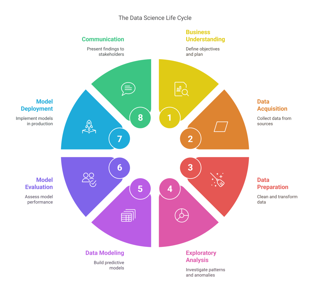 The data science life cycle provides a structured and iterative framework for transforming raw data into actionable insights and valuable solutions. From clearly defining business objectives and meticulously acquiring and preparing data, through insightful exploratory analysis and robust modeling, to rigorous evaluation and effective deployment, each phase plays a critical role in the success of a data science project. The journey doesn’t end with deployment; continuous monitoring, communication of results, and adherence to ethical principles are paramount for sustained impact and responsible innovation.