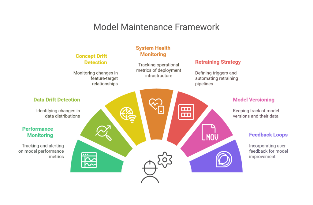 - Focus Areas: Model versioning, continuous integration/continuous deployment (CI/CD) for ML pipelines, automated retraining, model monitoring (for performance, data drift, concept drift), infrastructure management, and governance.
