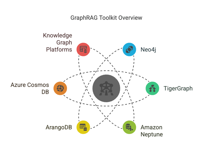 Building and deploying a GraphRAG system involves leveraging a stack of specialized tools and technologies. These components work together to enable the ingestion, storage, querying, and reasoning capabilities that define GraphRAG.