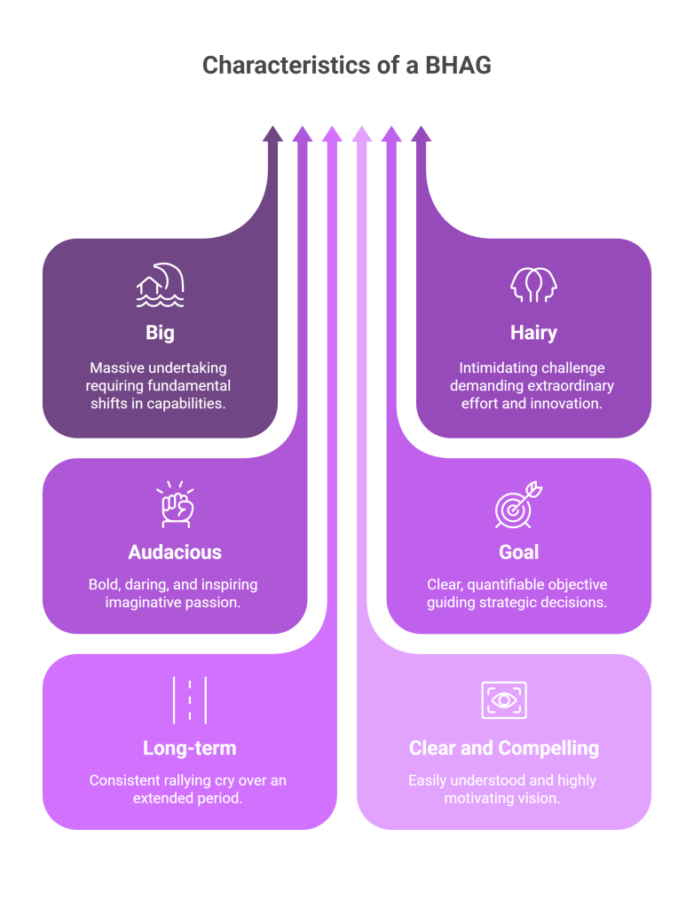 - Drives Fundamental Change: By definition, a BHAG requires significant transformation, pushing organizations to evolve and adapt.