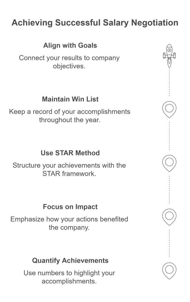 - Regular Performance Reviews: Use performance reviews as an opportunity to discuss your accomplishments and their impact, and to advocate for a salary increase.