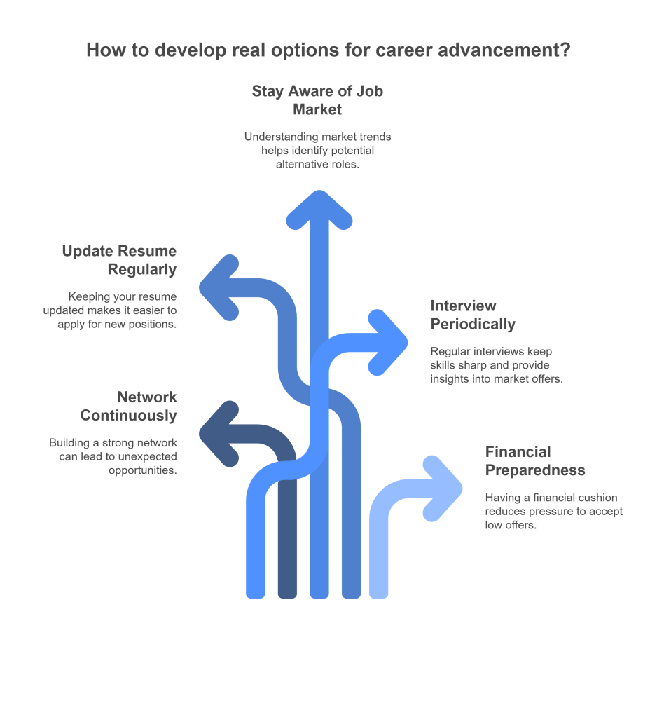 - Interview Periodically: Consider interviewing for other positions even if you’re not planning to leave your current job immediately. This helps you stay sharp with your interview skills and provides insights into what other companies are offering.