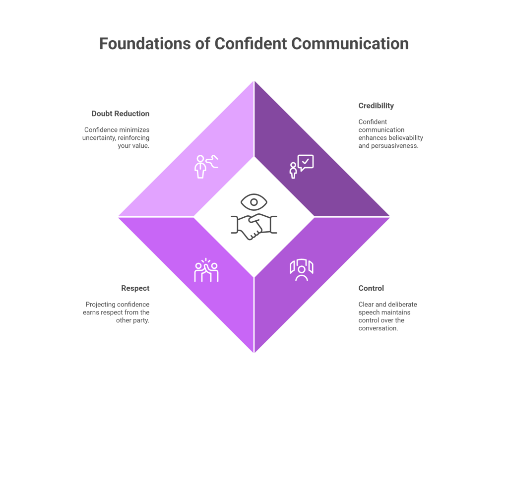 - Credibility: Confident communication makes your statements more believable and persuasive.