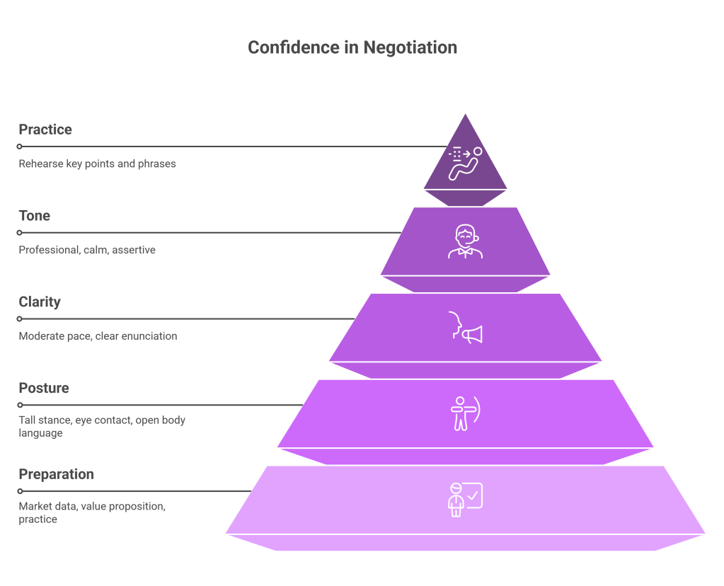 - Preparation is Key: Knowing your market data, your value proposition, and having practiced what you want to say are the foundations of confidence.