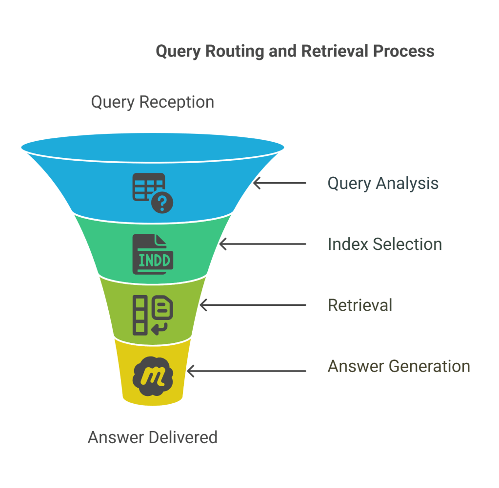 - Multiple Indices: Different specialized or structured indices (e.g., “Index of summary vectors,” “Single vector store of all chunks vectors”) that the query can be routed to.