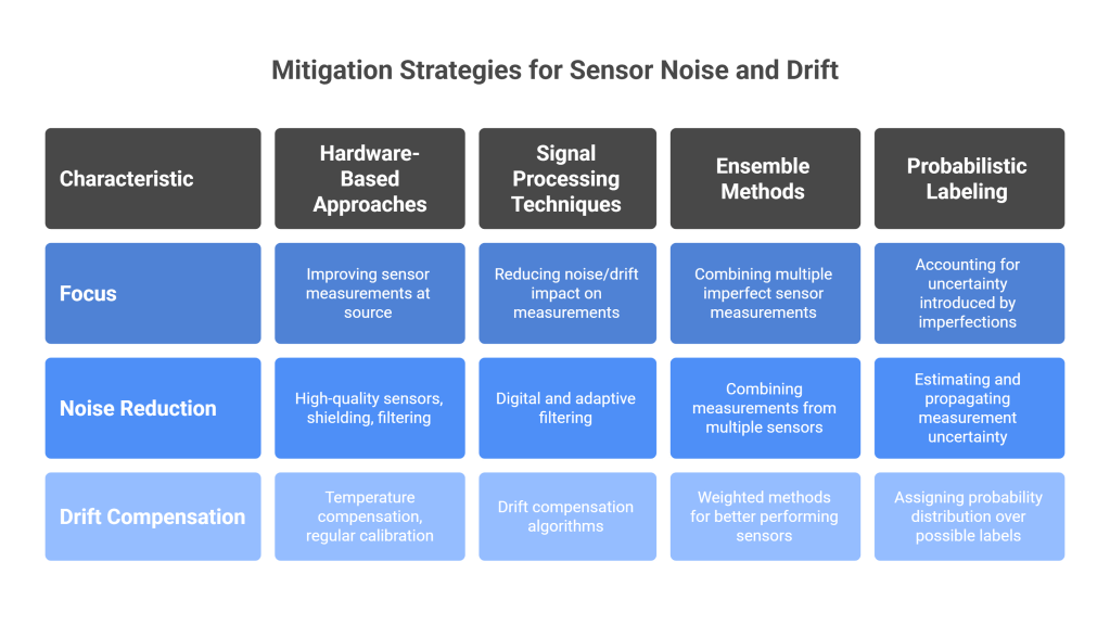 Despite the challenges posed by sensor noise and drift, various strategies can be employed to mitigate their impact on data labeling and subsequent machine learning applications. These strategies span hardware, software, and algorithmic approaches, often requiring a combination of techniques to achieve optimal results.