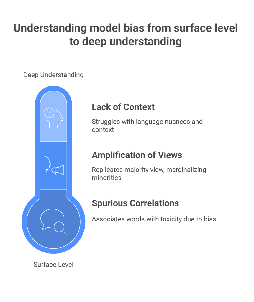 - Linguistic Bias: Language is not monolithic, and different communities use it in different ways. Annotators who are unfamiliar with certain dialects, such as African American English (AAE), may misinterpret non-standard language as toxic or offensive. This can lead to the systematic penalization of content from specific linguistic communities.